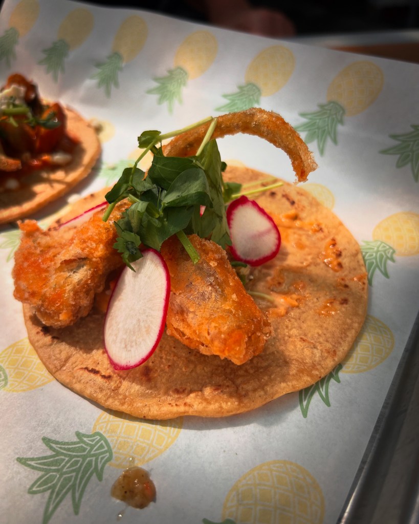 These are not your father’s tacos. These are the tacos of revolution, the very apotheosis of a culinary uprising that seeks to ennoble and elevate the more traditional stalwarts of modern gastronomy through the ardent application of enhanced sourcing and technique, ultimately endeavoring to devise a new gustatory form wholly finer in function and flavor than its progenitor. Tacos as insurgency. Tacos as the proletarian pirate ship that finally commandeers haute cuisine.