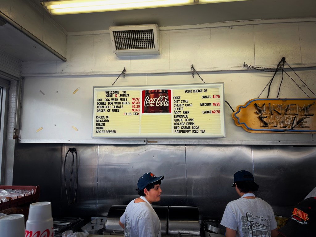 Look at their menu and see what I mean. Gene & Jude’s sells three things. They sell hot dogs. They sell French fries (house made in plain view of guests). And they sell corn tamales. Besides soft drinks, that’s all they sell.