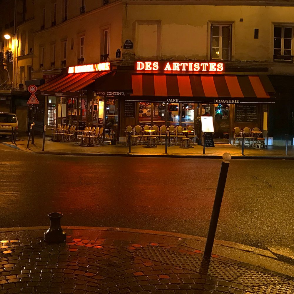 Americans are right to consider the Parisian café kindred to the American diner. The Parisian café, like the diner, is deliberately unfussy in its culinary aesthetic, and intensely proletarian in its gastronomic pride. They’re similarly unfettered by tyranny of the mealtime clock, these cafes, offering Parisians omelets at midnight, and steak frites at 6 A.M. The kind of place into which a weary traveler like me might stumble, rain-soaked to his skivvies from his trapse around Montmartre, and in desperate need of warmth and nourishment. A place precisely like Au Rendez-Vous Des Artistes.